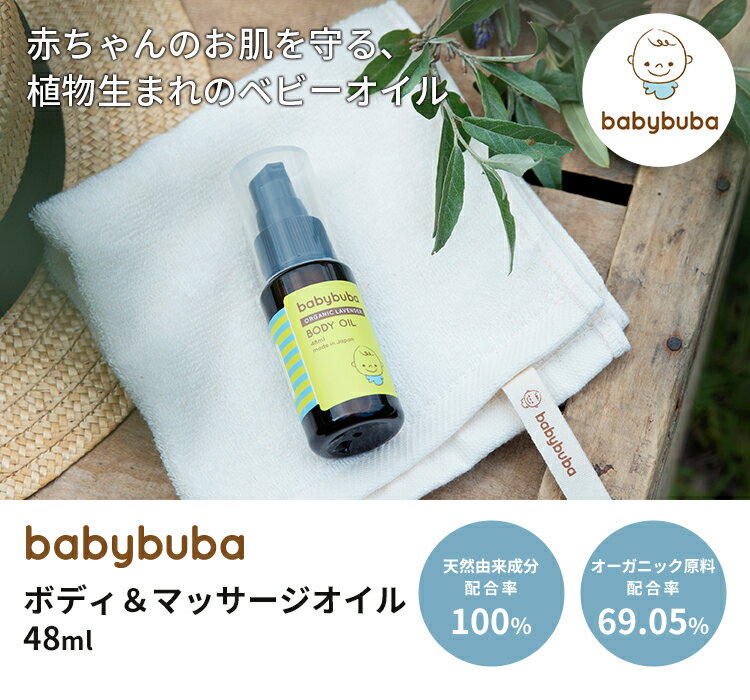 babybuba ボディ&マッサージオイル 48ml 乾燥を防ぎ、しっとりバリアするボディオイル babybuba(ベビーブーバ) あかちゃんのお肌にとって快適で本当によい商品ってなんだろう?そんな疑問から「babybuba」は生まれました。
