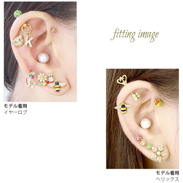 耳たぶ ピアス 16g 蜂 ピアス ボディピアス 14g バーベル ゴールド シルバー ハチ 蜂 軟骨ピアス 耳たぶ ヘリックス ジュエル 軟骨用