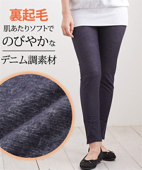 大きいサイズ レディース 裏起毛 デニム 調10分丈 レギンス ネイビー LL〜3L ニッセン