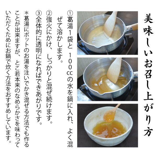 葛湯 とこ若が持つ本物の味・香りを最大限に味わっていただくため、必ずお鍋で炊きあげていただく必要があります。
